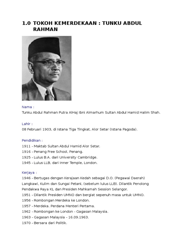 Tokoh Sejarah Malaysia Tunku Abdul Rahman Bapa Kemerdekaan